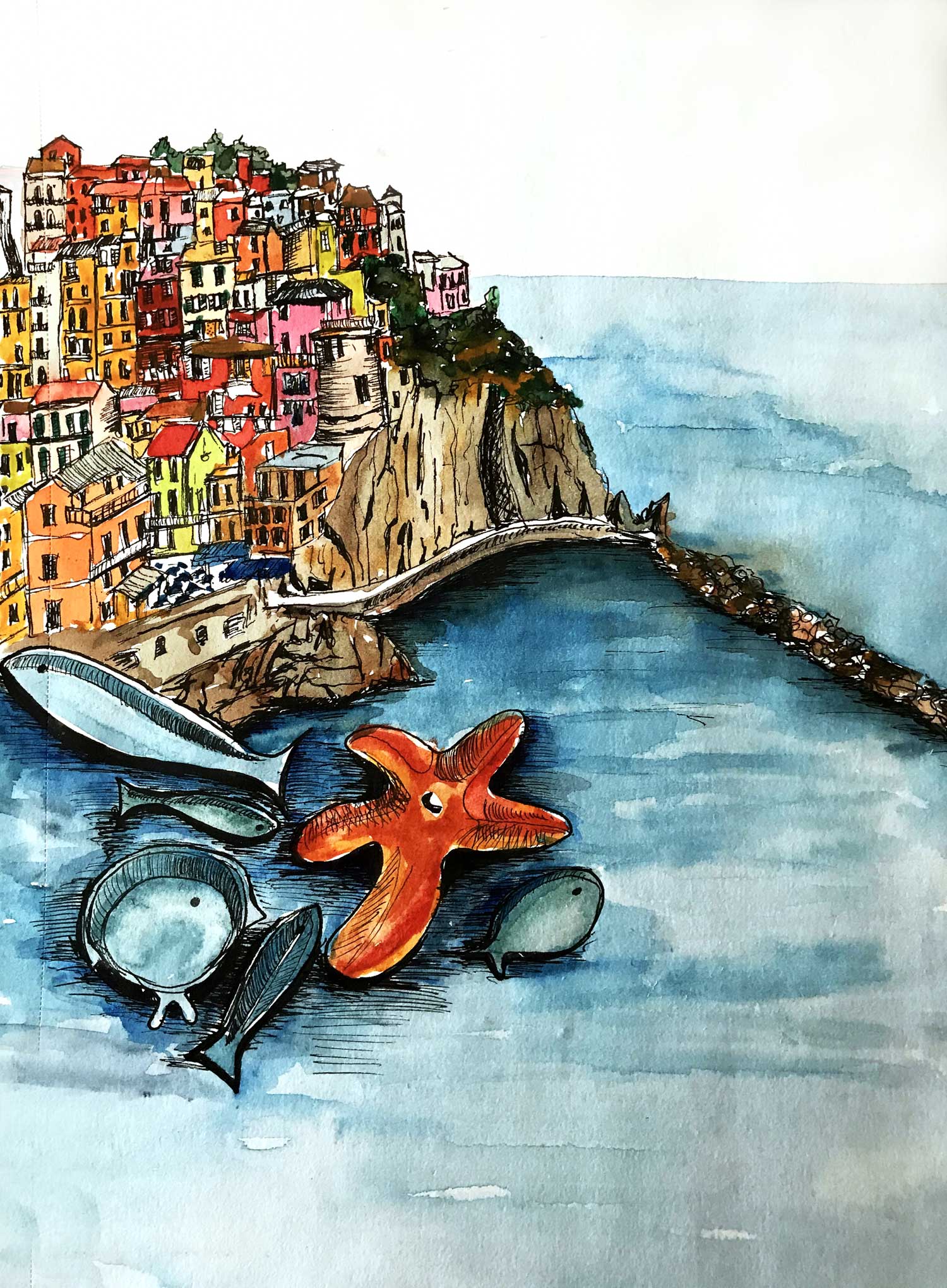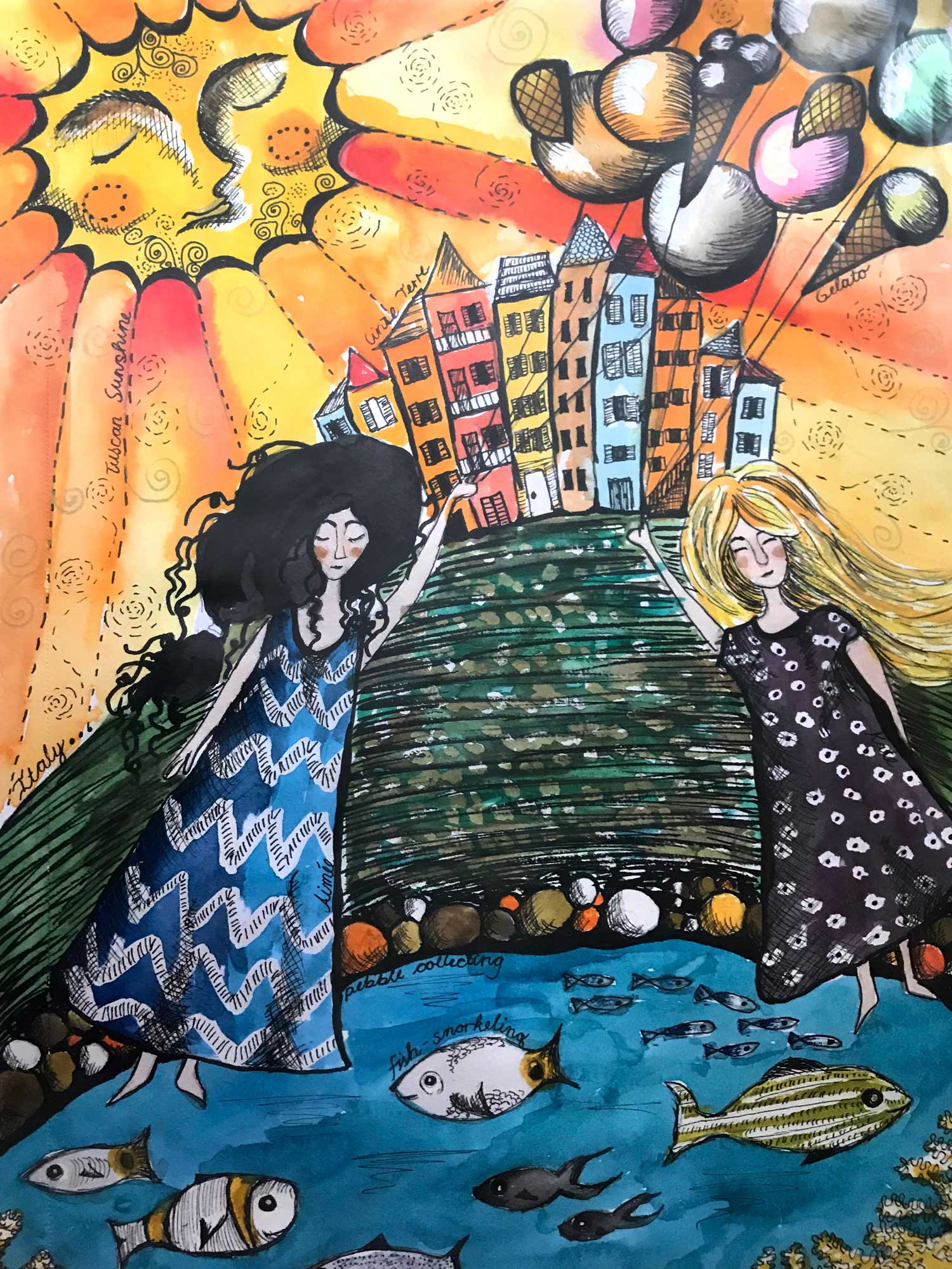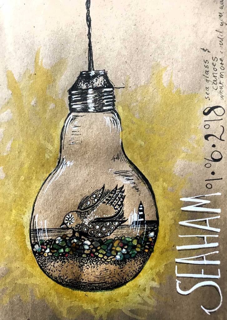 I love to draw, my visual journal is never far from me and goes on all of our holidays, day-trips and walks, along with a huge pencil case full of pens, pencils, watercolours, brushes and any other creative bits n bobs I think I might need for that day’s illustration.