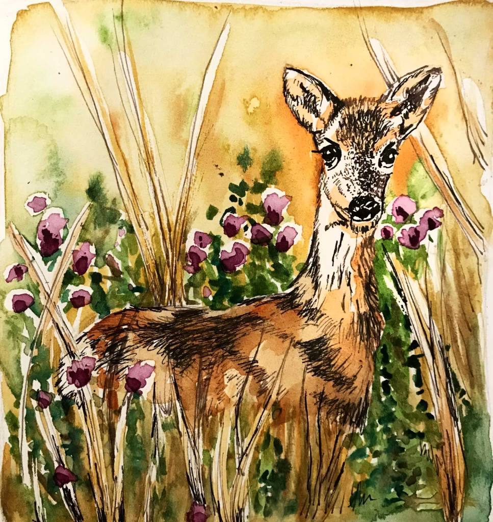 I am a member of the Wildlife Trust (UK) and every year they have a 30 days wild challenge: to challenge people to do one wild thing per day, to appreciate and get in touch with nature, this could range from walking on the grass barefoot, to dancing in the rain, to watching a bee collect nectar. I challenged myself to create a new Illustration each day of something wild or natural I had seen, and these are my illustrations…