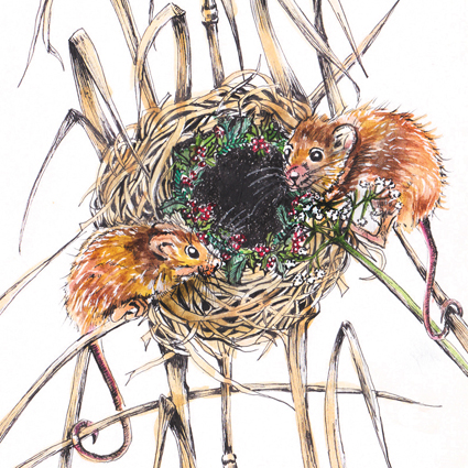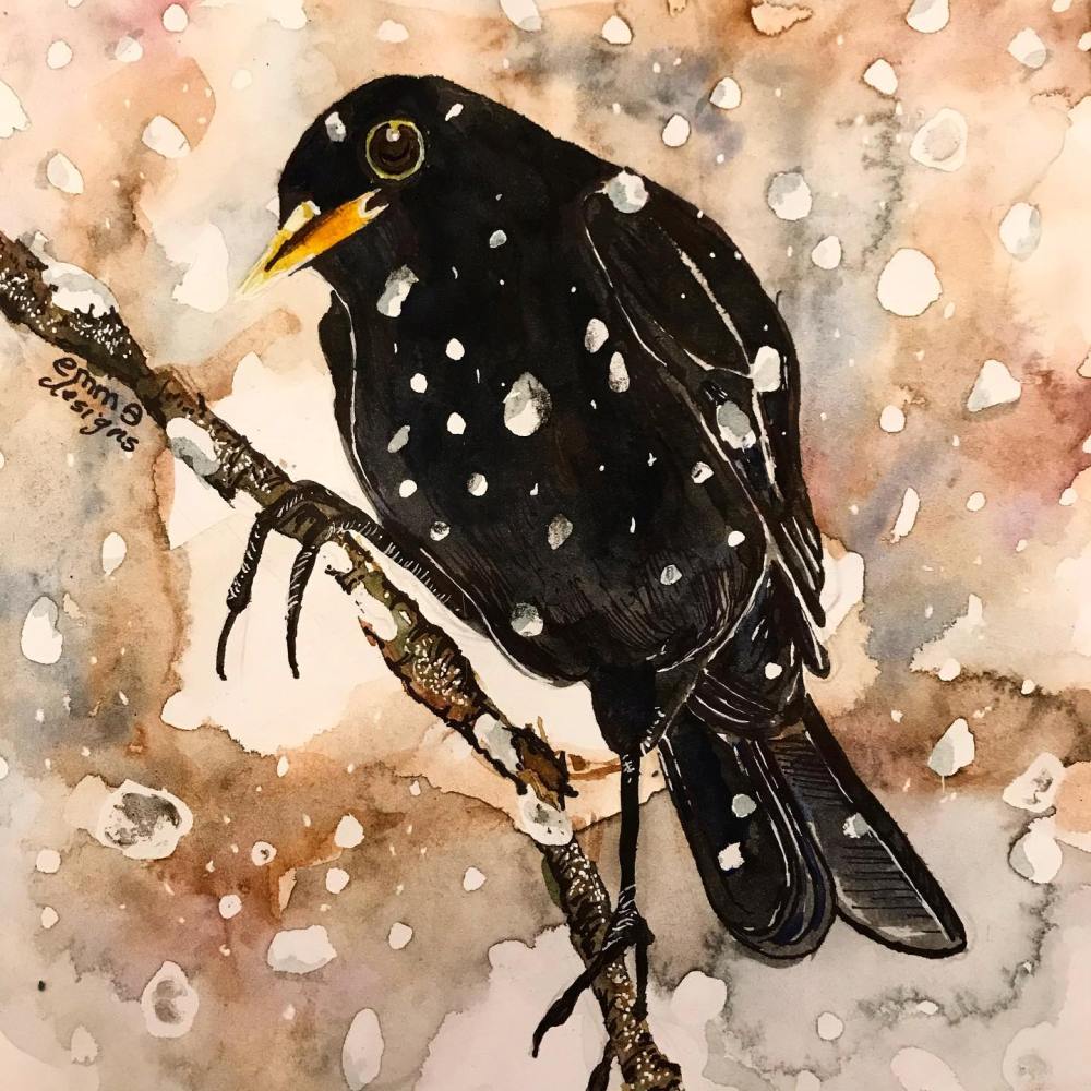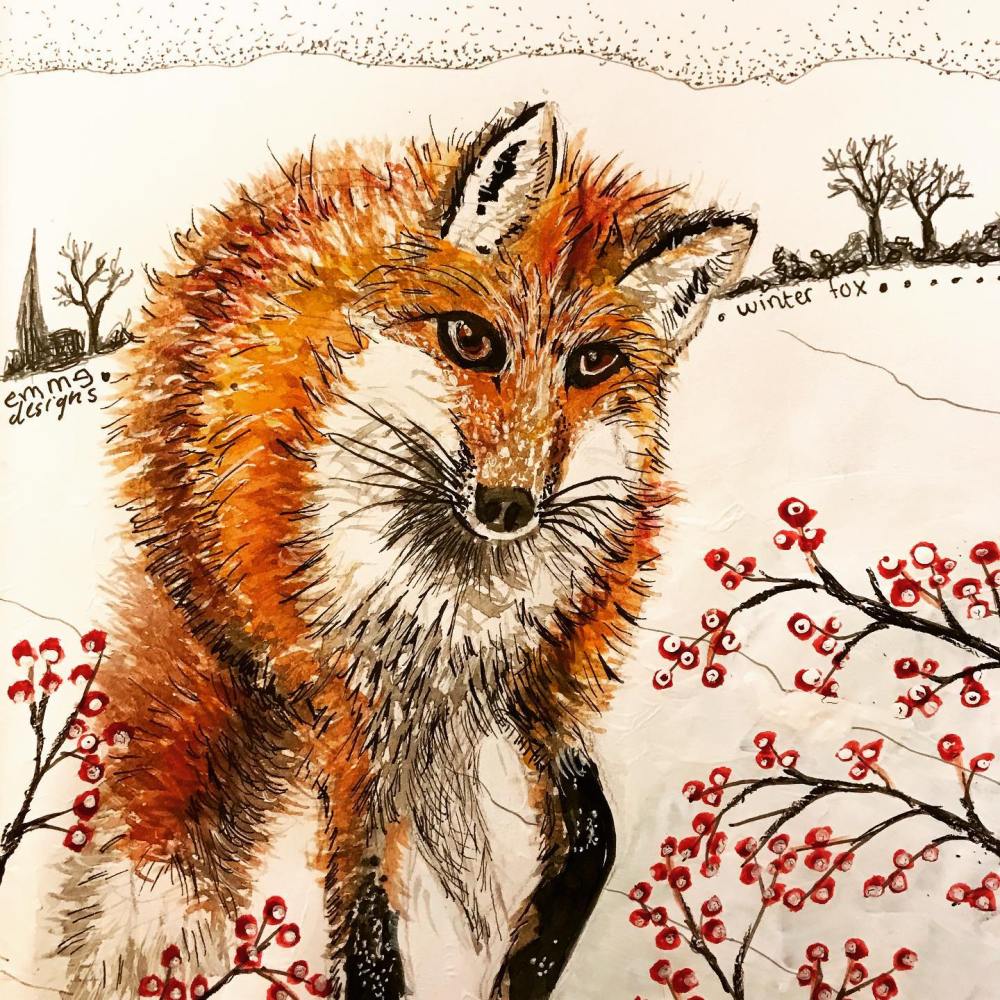 These illustrations were inspired by the cold, snowy winter season. I illustrated animals and birds within this new wintery landscape with pen and ink, watercolours, soft pastels and collage.
